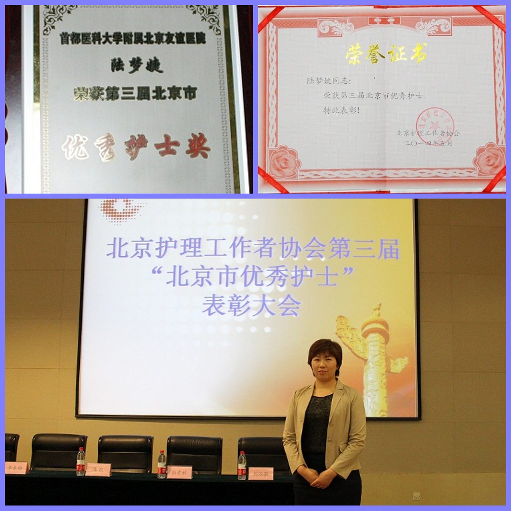2014年5月8日,北京护理工作者协会主办的第三届“北京市优秀护士”表彰活动中,我院神经内科护士陆梦婕获得该荣誉称号。 北京护理工作者协会于今年护士节前组织开展了此次“北京市优秀护士”评选活动。在全市二级以上医院采取自下而上的推荐程序。经过各医院推荐,有近百名事迹突出的优秀护士候选人报名。按照评选标准,通过医院公示、专家评审等程序,最终陆梦婕等40名护士被授予“北京市优秀护士”荣誉称号。(护理部)